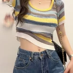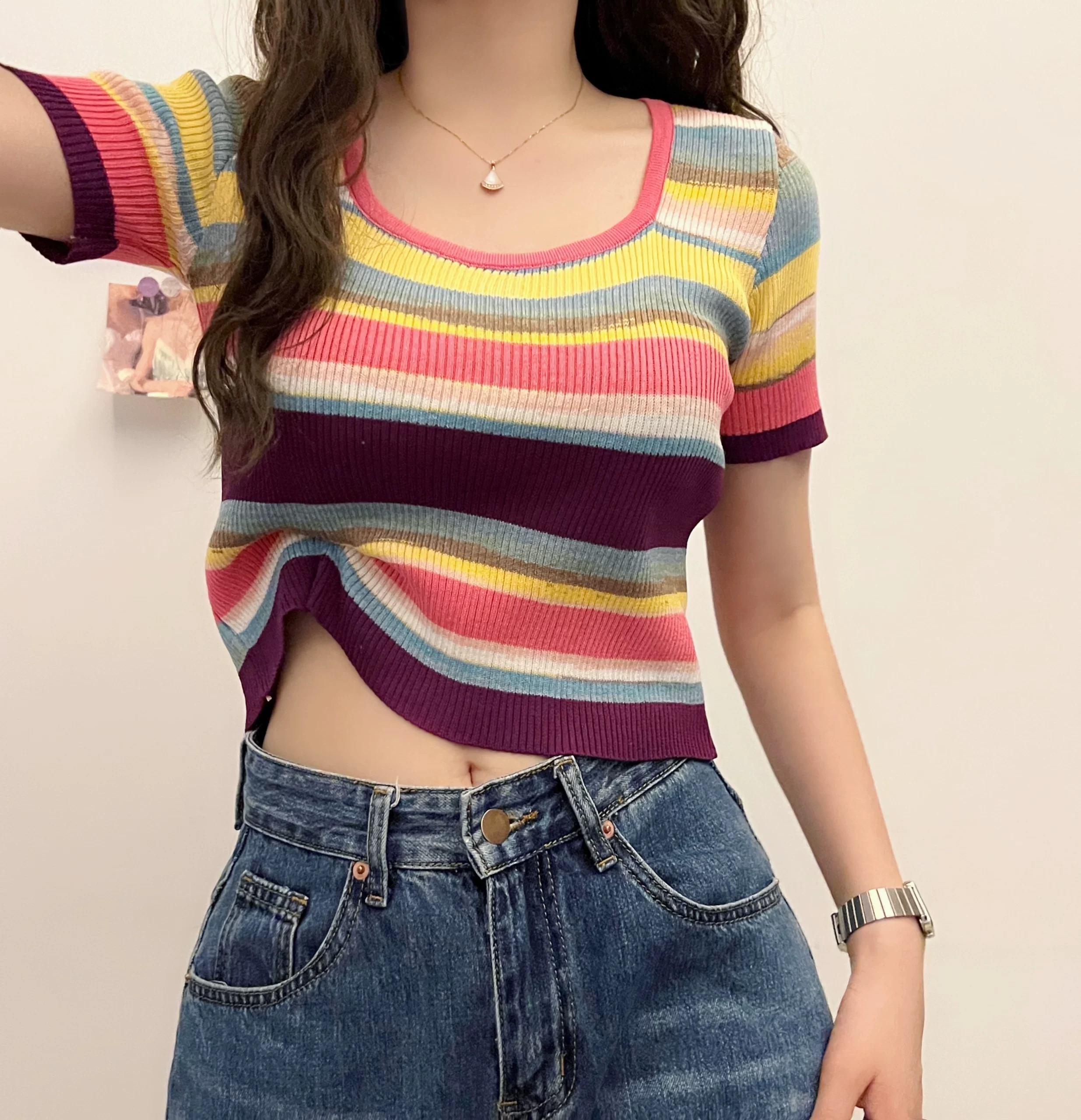 | nameOriginal | Shiitake Rainbow Stripe Dopamine Slim Fit Short Sleeve T-Shirt |