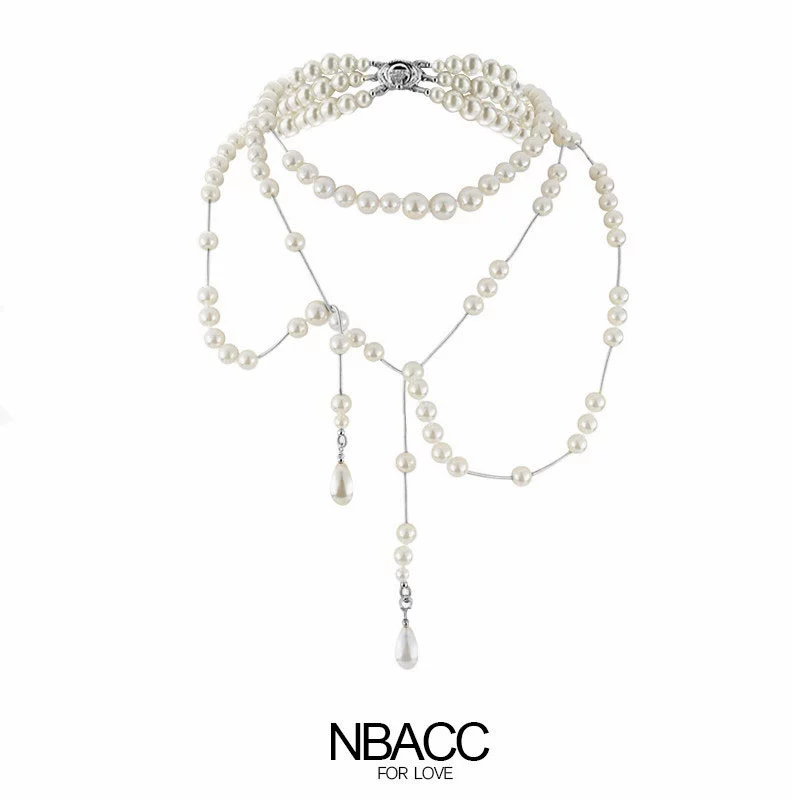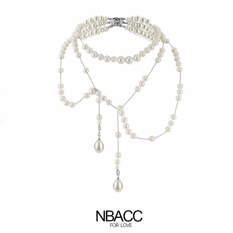 Shijia gray autumn and winter stacked popular sweater chain pearls