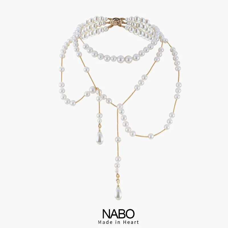 Shijia gray autumn and winter stacked popular sweater chain pearls
