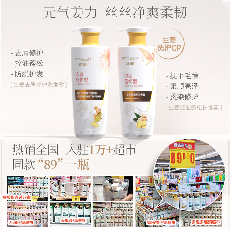 Shilang Guochao Tea Seed Lingering Ginger Anti-dandruff Shampoo Set Authentic Shampoo Conditioner Factory Wholesale