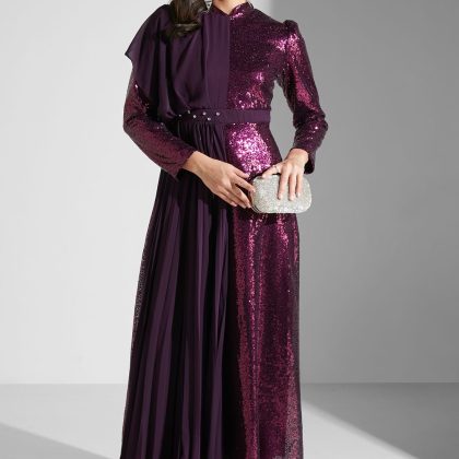 Shimmering Chiffon Dress with Overlap Design.