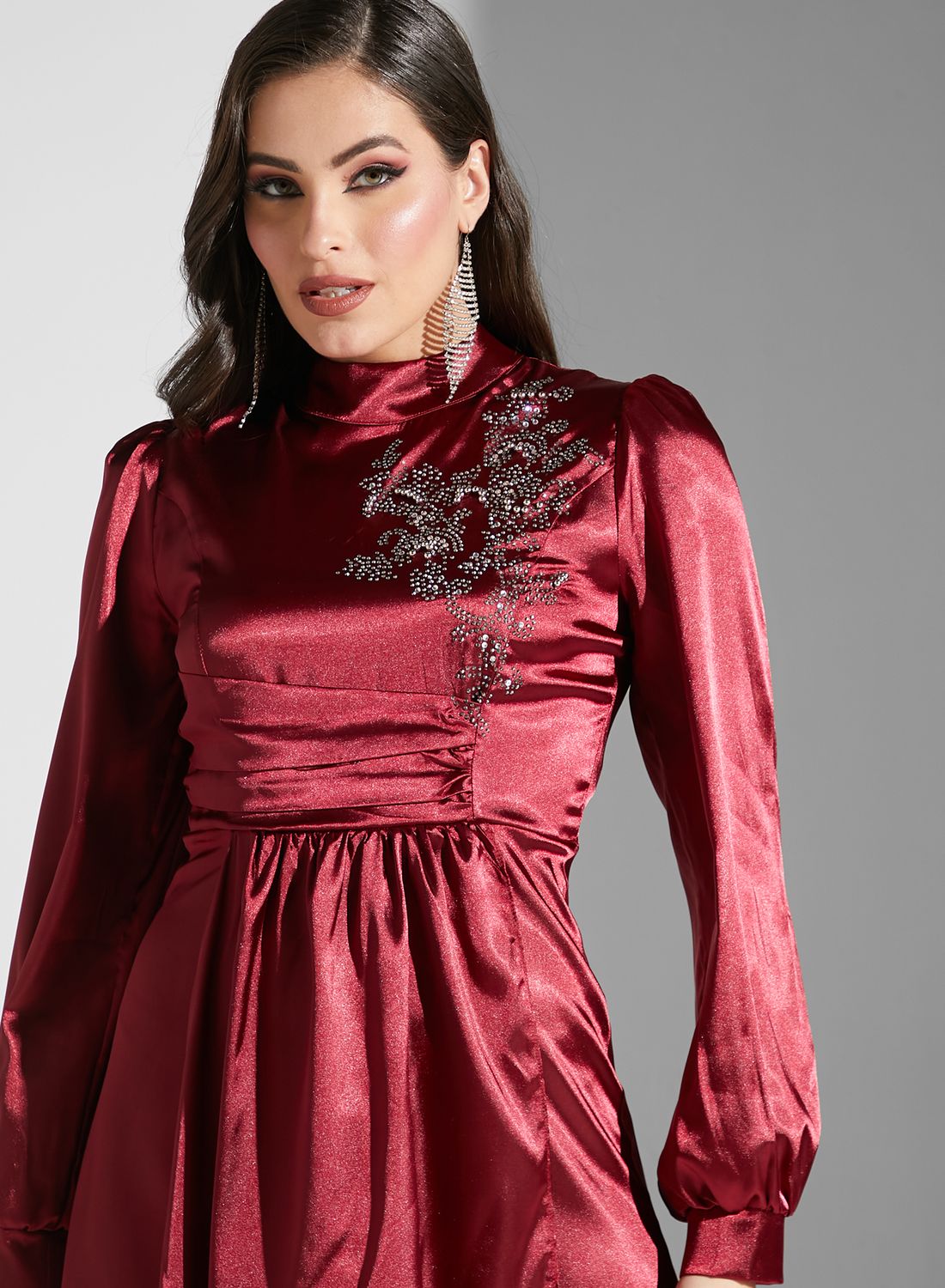 Embroidered Detail Shimmer Dress