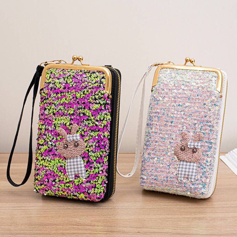 | nameOriginal | Shiny sequin clip bag cute rabbit vertical mobile phone bag multi-card crossbody shoulder bag hand-held coin purse batch |