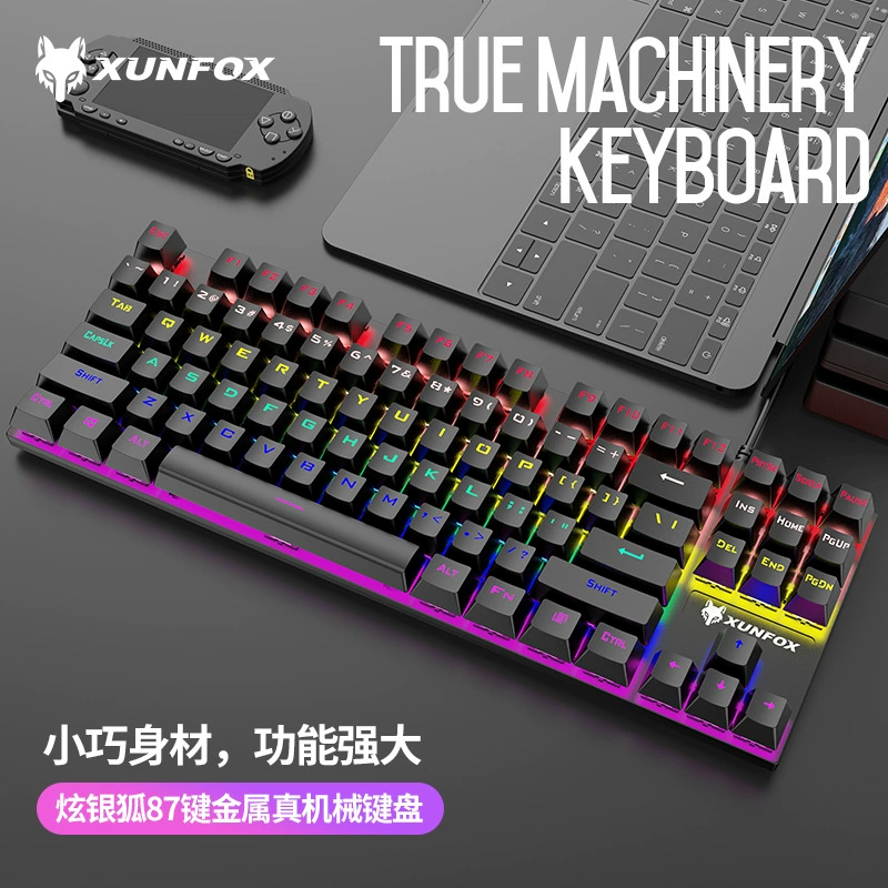 | nameOriginal | Shiny Silver Fox K80 True Mechanical Keyboard 87-Key USB Illuminated Green Axis Color Matching Keyboard E-Sports Game |