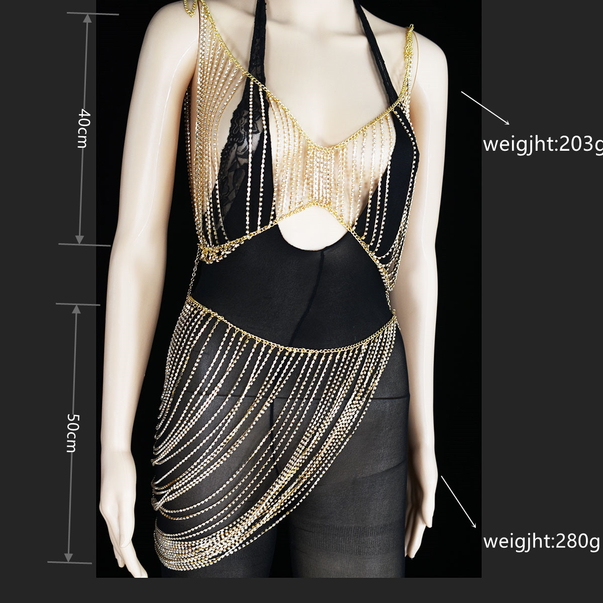 Shiny Underwear Show Vertical Tassel Bra Vest Skirt Rhinestone body chain body chain Cross Border Jewelry