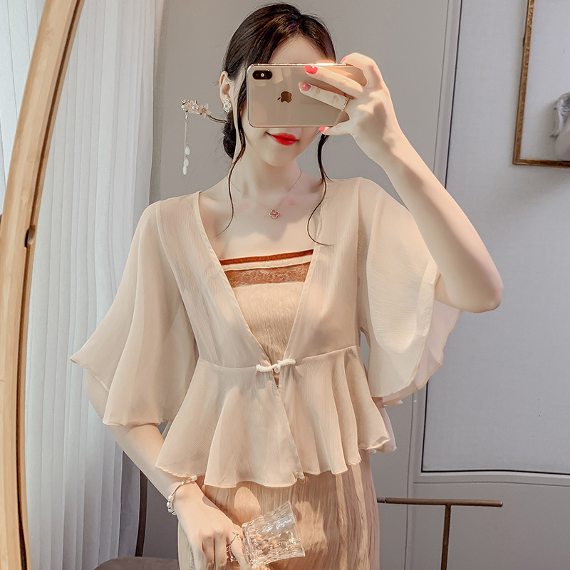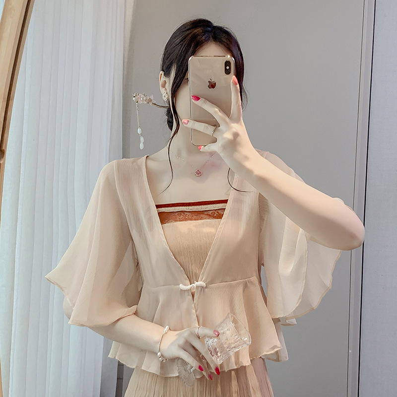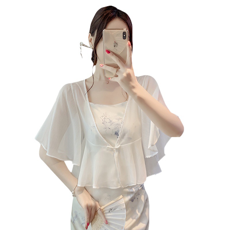 Shipped 2024 Spring and Summer New Short Loose Chiffon Sunscreen Shirt Small Shawl Cardigan Women