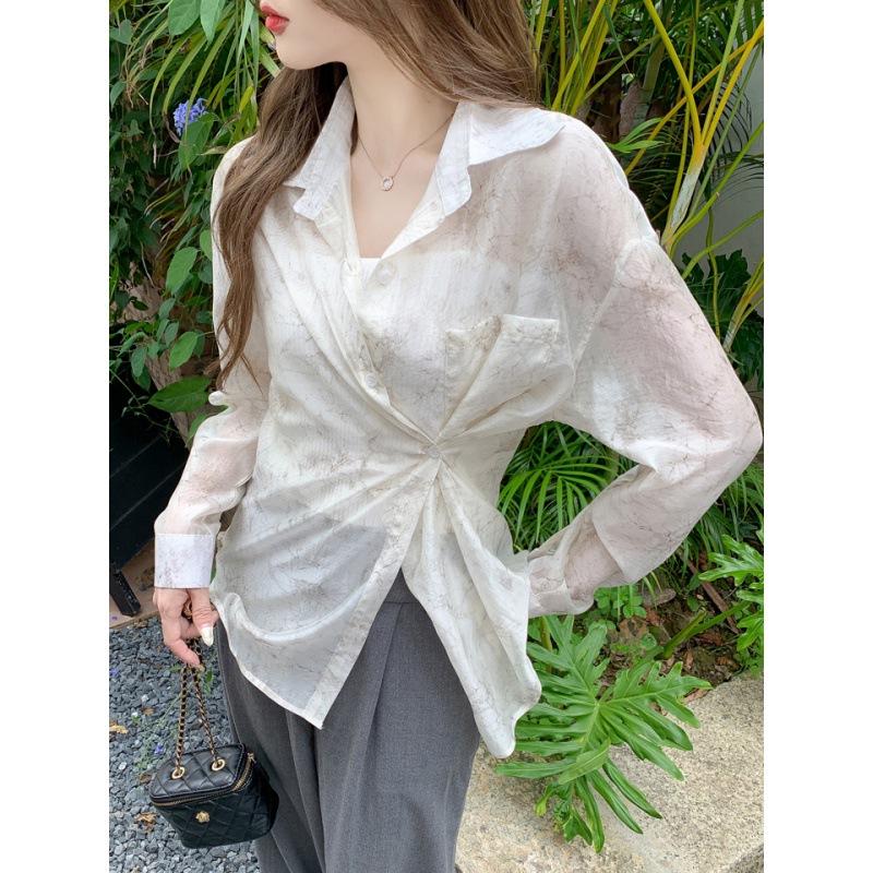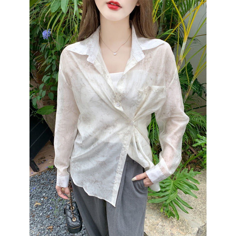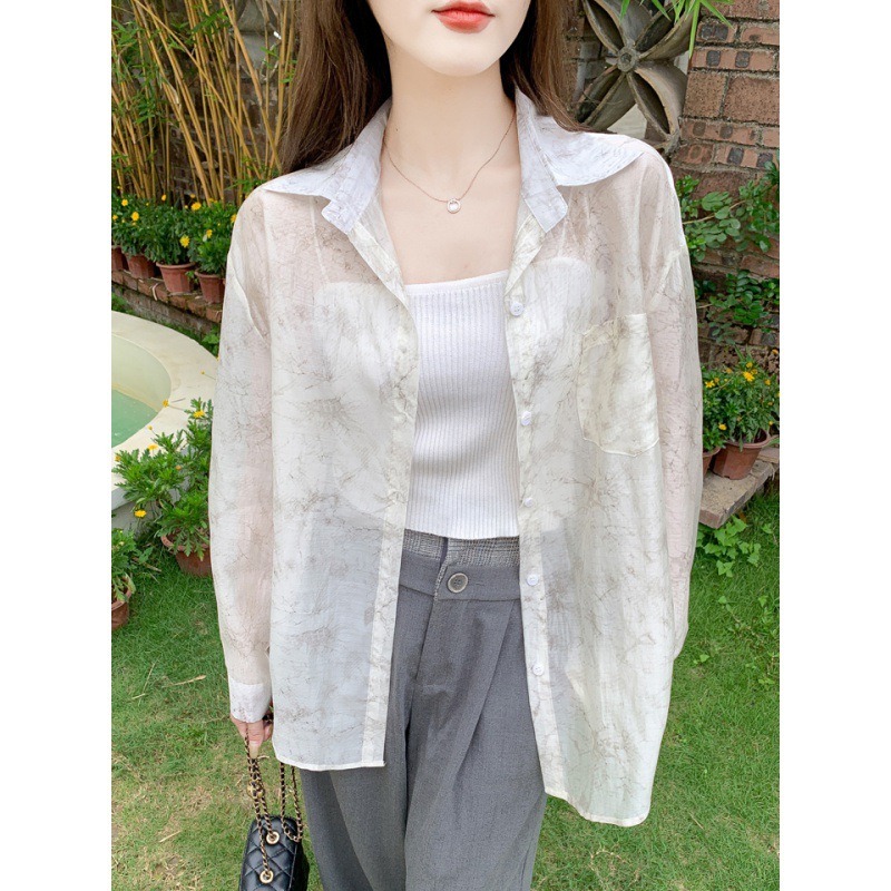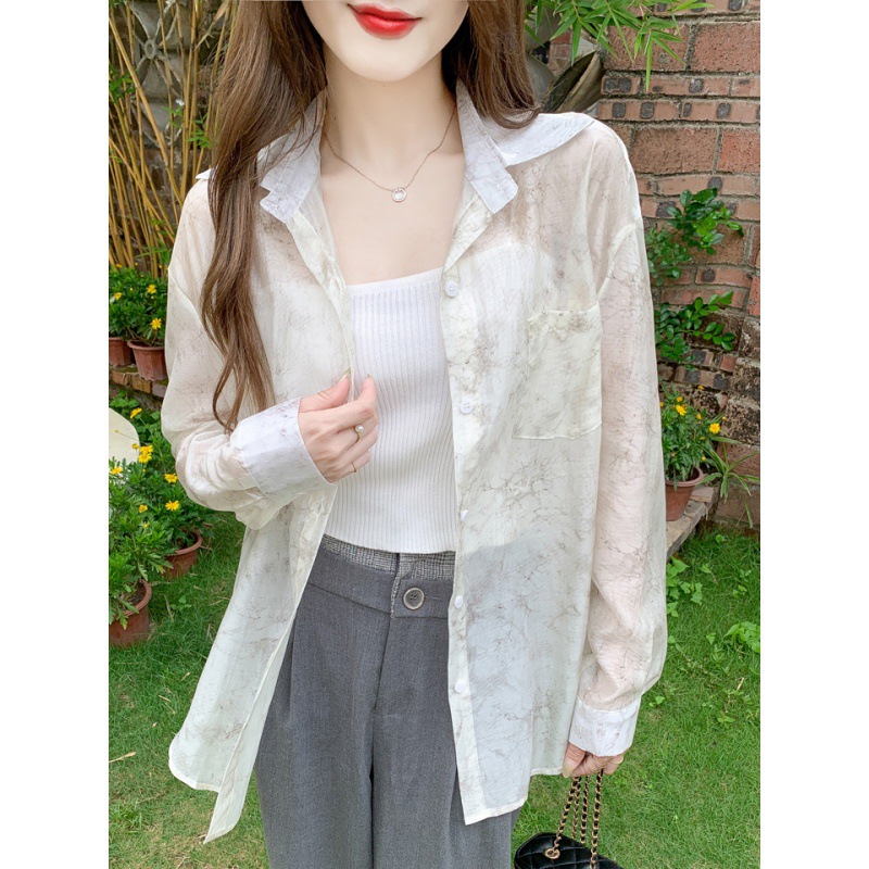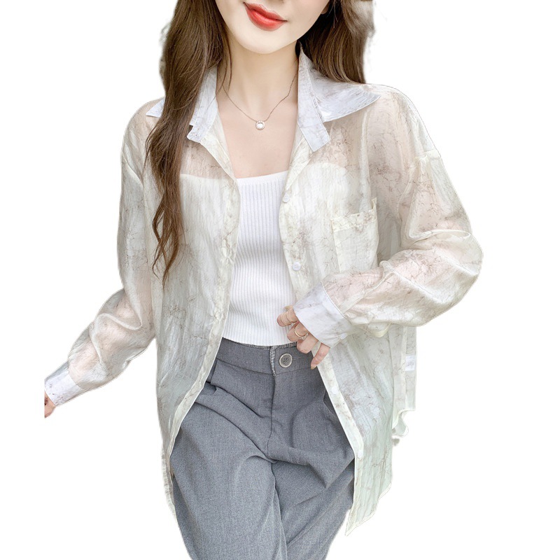 | nameOriginal | Shipped ink painting vignetting loose shirt women's 2024 summer design sense small foreign style long sleeve sunscreen thin shirt |