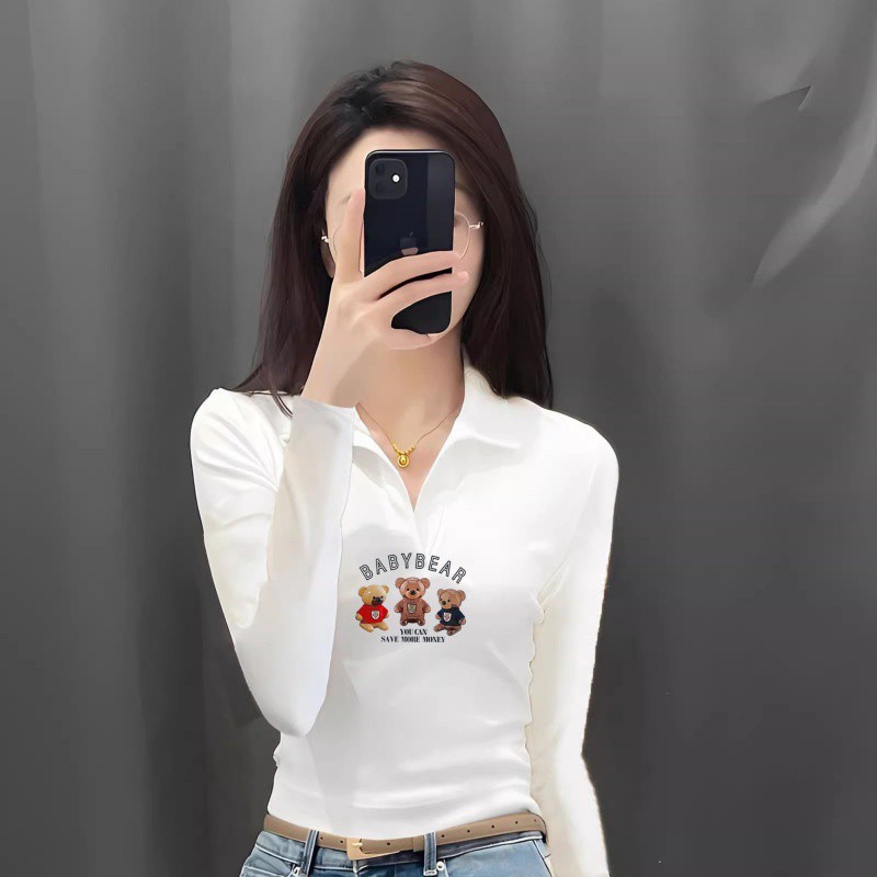 | nameOriginal | Shirt Long-sleeved T-shirt Women's Autumn Shoulder Slim-fit Lapel Without Buckle Elastic Letter Printing Base Simple |