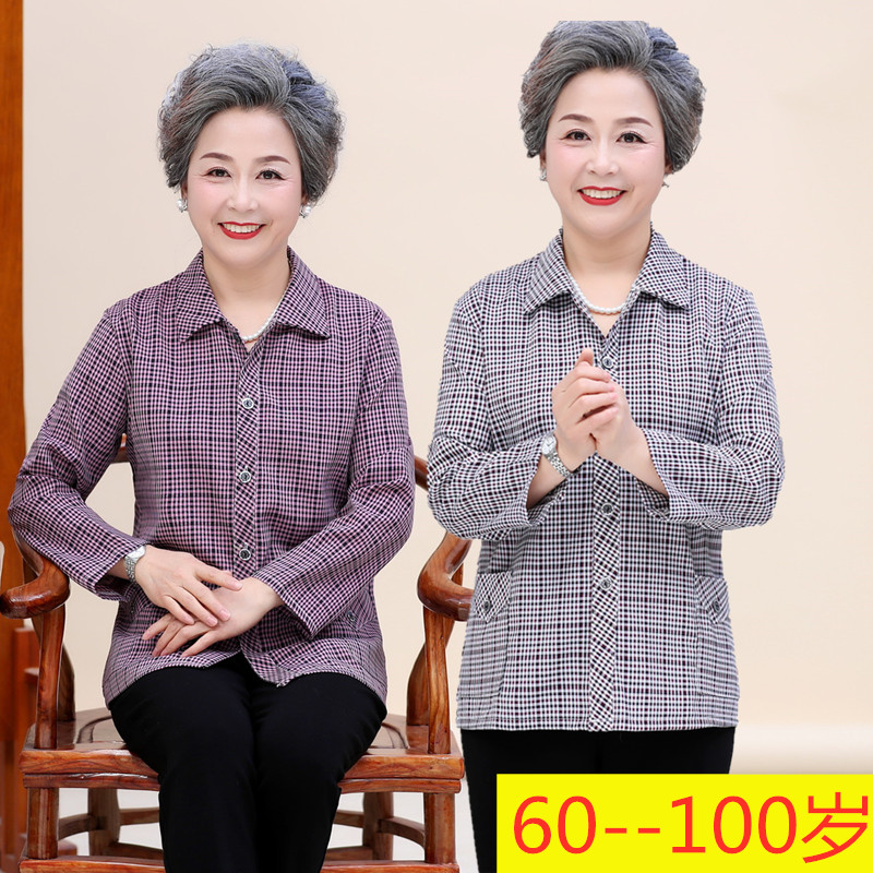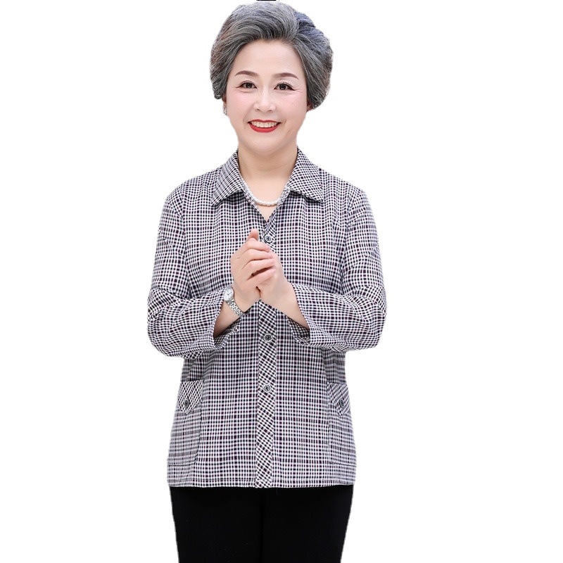 | nameOriginal | Shirt Mom Elderly Cotton Shirt Women's Spring and Autumn Elderly Long Sleeve 60-70-80 Grandma Cardigan Top |