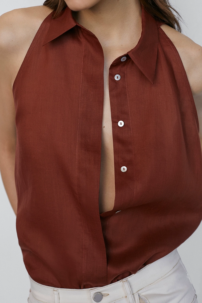 | nameOriginal | Shirt niche ramie neck casual halter top MD |
