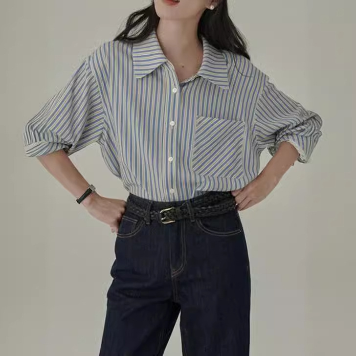 | nameOriginal | Shirt Spring and Autumn New Fashion Elegant All-match Gentle Style Lazy Korean Striped Shirt for Women |