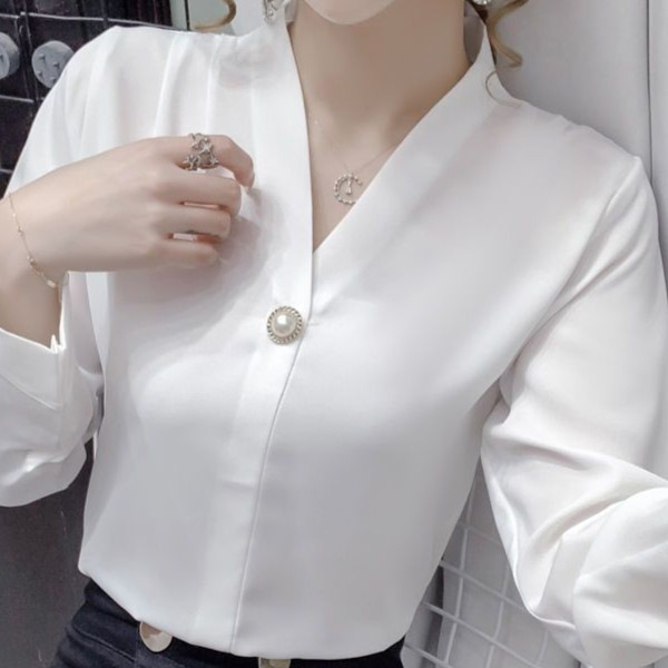 | nameOriginal | Shirt Spring V-neck Shirt Shirt Women's 2024 New Style Korean Niche White Black |