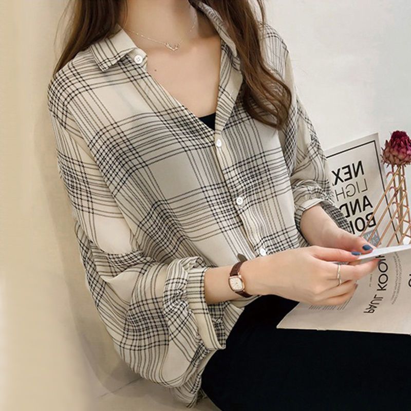| nameOriginal | Shirt Women's 2024 Summer New Korean-style Chiffon Shirt Thin Sun-protective Clothing Women's Outfit Niche Plaid Western Style Top |