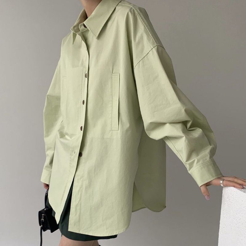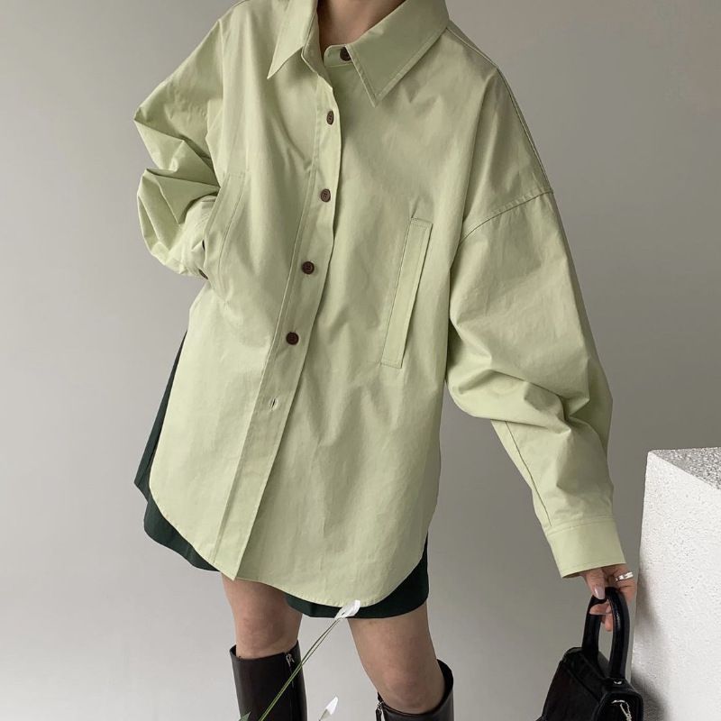 | nameOriginal | Shirt Women's Design Sense Niche Gentle Cream Green Spring and Autumn Korean Chic Top High Sense Fried Street |