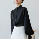 Shirt women’s design sense niche spring 2024 new Korean version of loose slim lantern sleeve stand collar temperament top