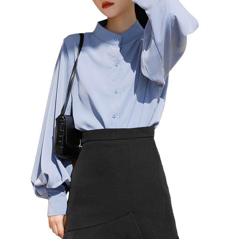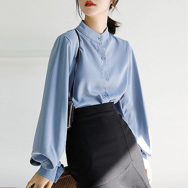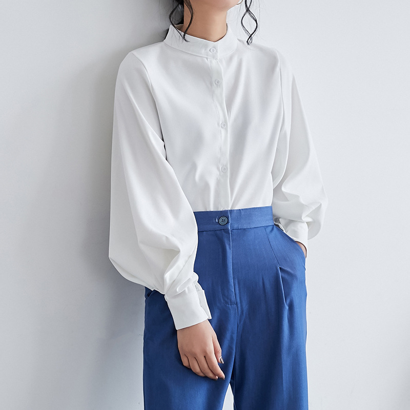Shirt women's design sense niche spring 2024 new Korean version of loose slim lantern sleeve stand collar temperament top