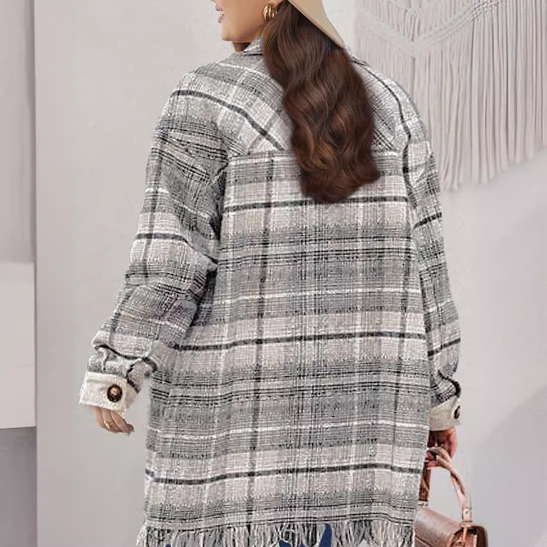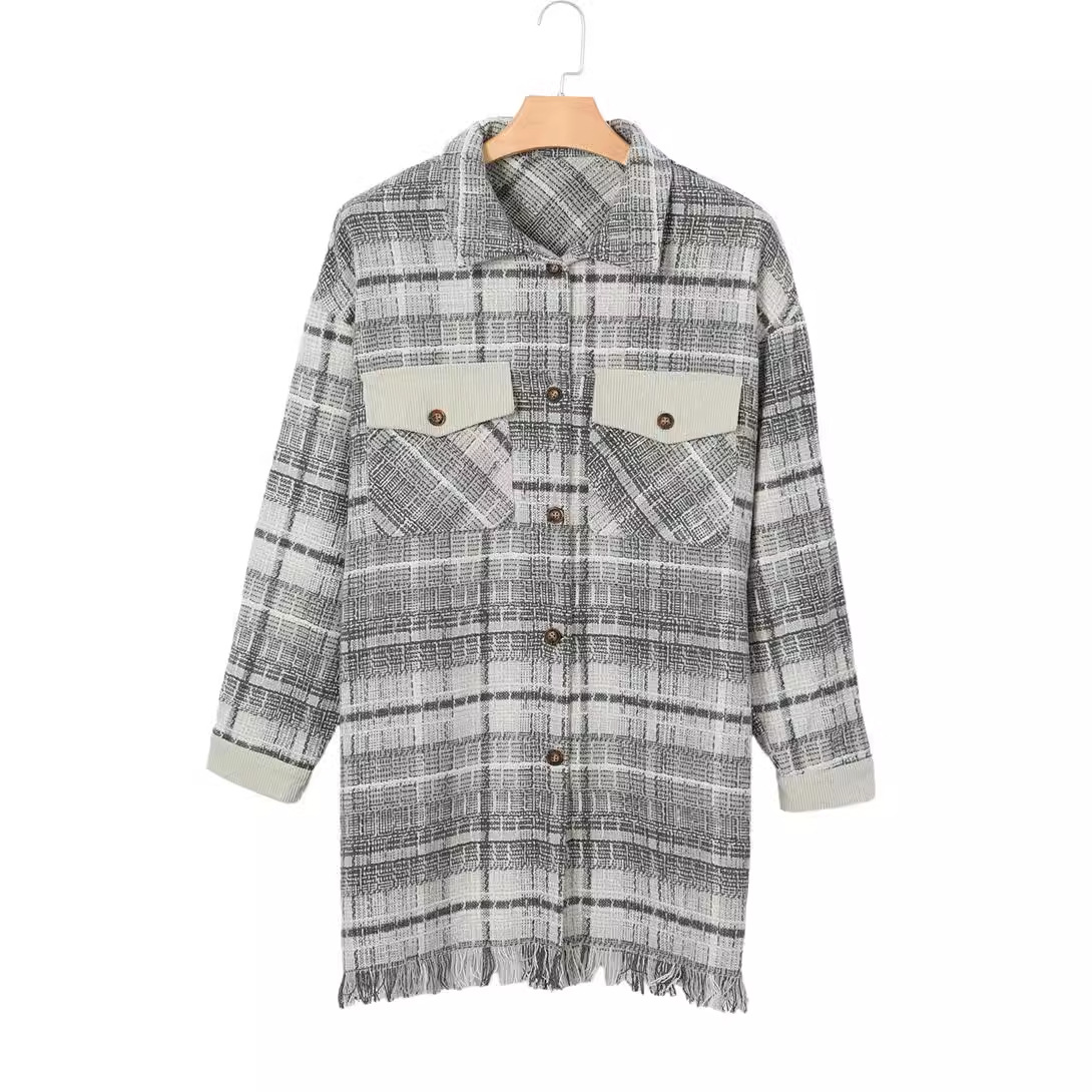| nameOriginal | Shiying Cross-border Hot Autumn and Winter New Long Sleeve Jacket Women's European and American Fashion All-match Pocket Plaid Women's Coat |