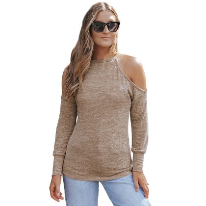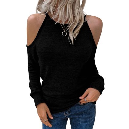 Shiying cross-border hot autumn new solid color pullover Women’s European and American personality design hollow bottoming shirt Women