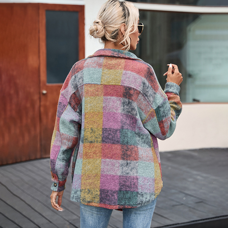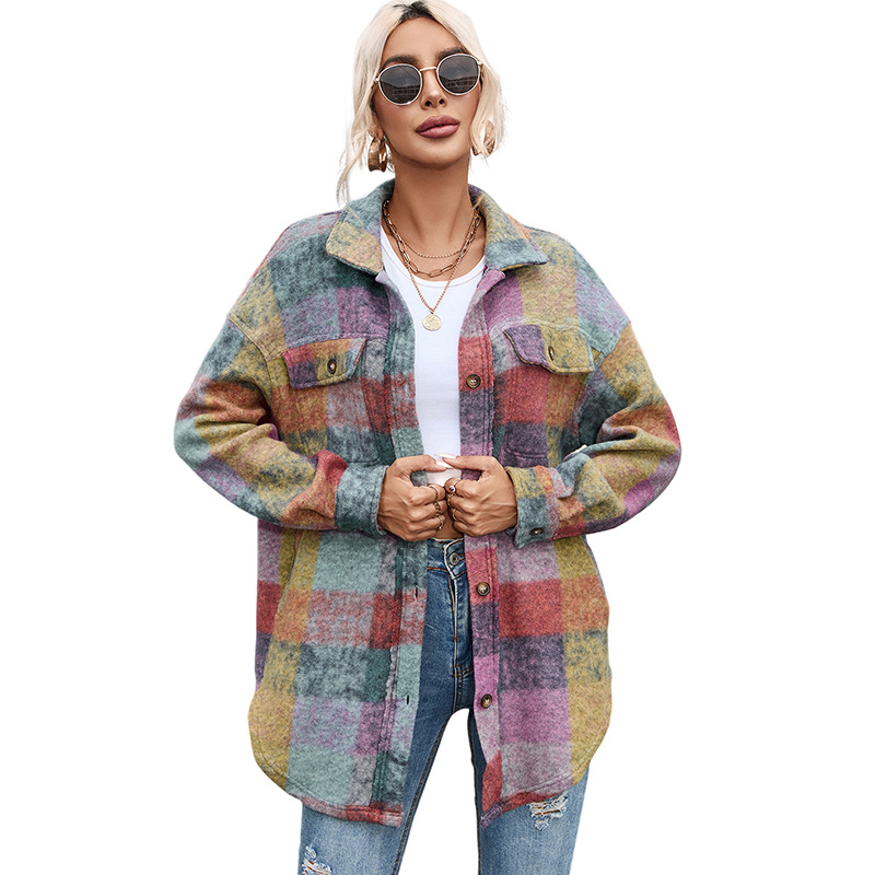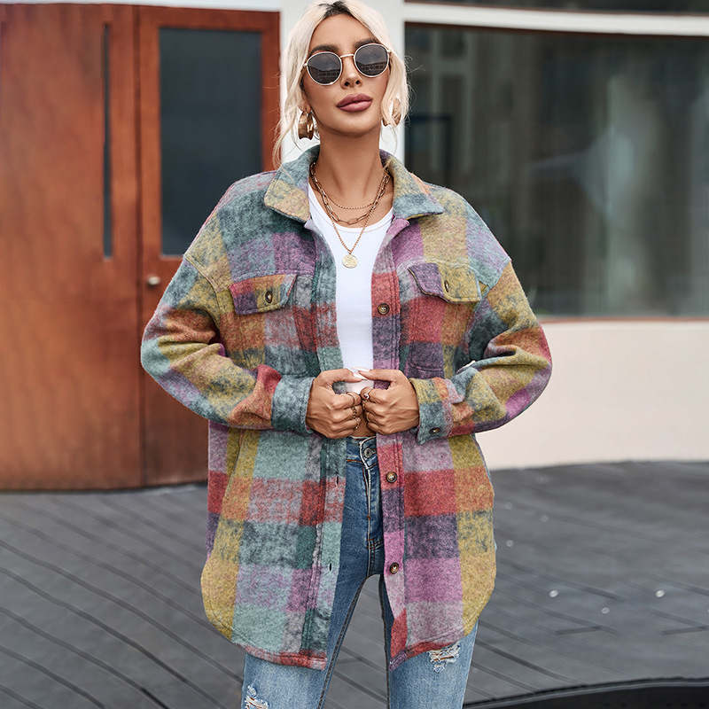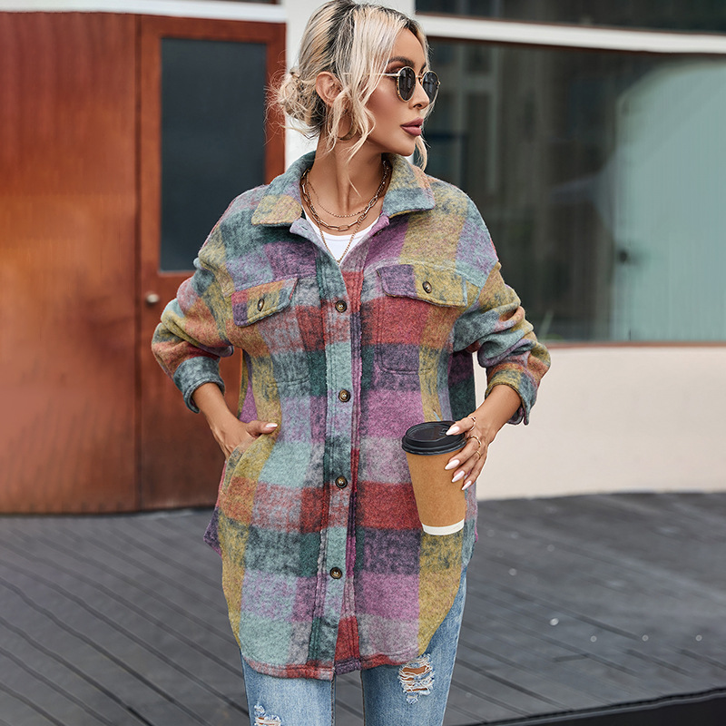 | nameOriginal | Shiying European and American loose long sleeve mid-length coat women's autumn new foreign trade casual color plaid jacket women |