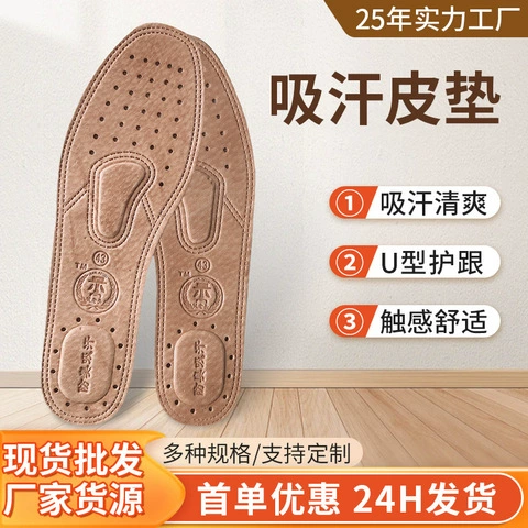 Shock-absorbing insoles, breathable leather shoe insoles, sports genuine leather, anti-odor, sweat-absorbent, thickened, comfortable spring and autumn cowhide