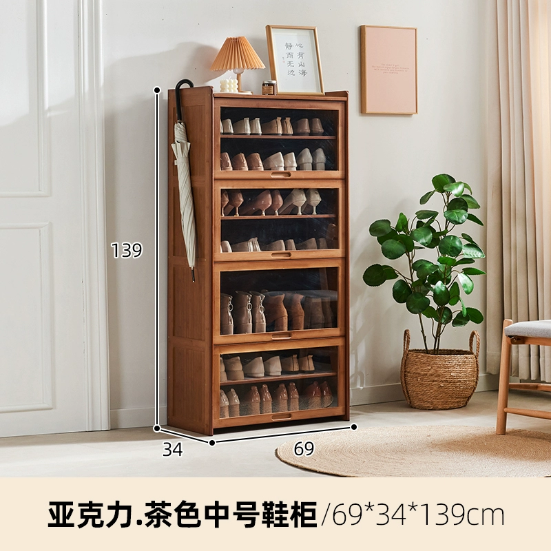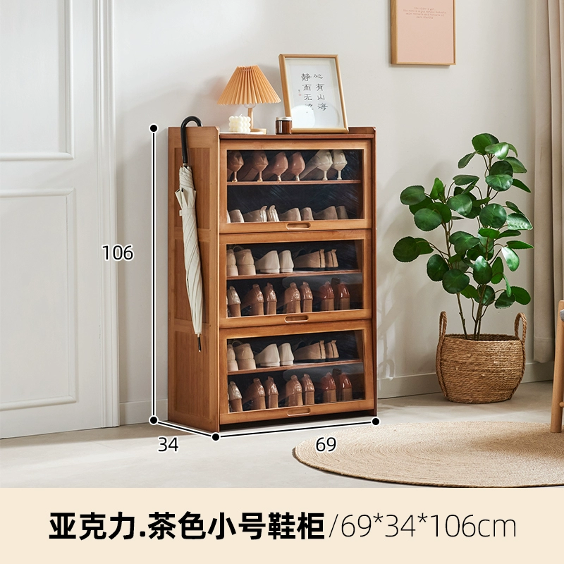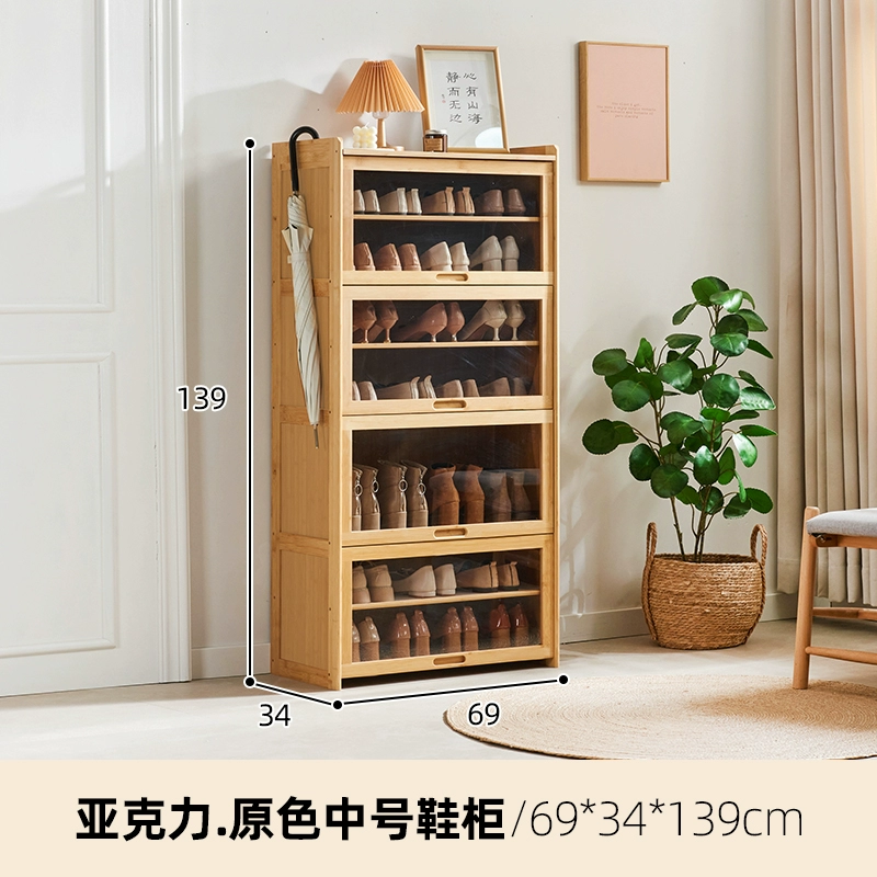 Shoe cabinet home entrance entrance porch cabinet rattan shoe shelf balcony bamboo solid wood space-saving dust-proof storage cabinet
