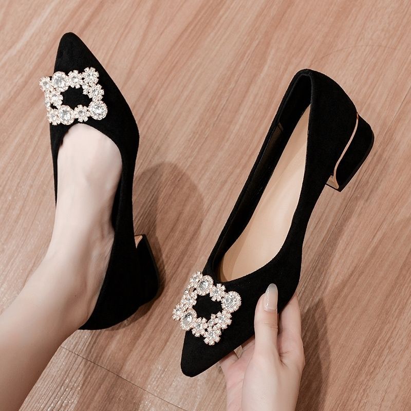 | nameOriginal | Shoes Women's 2024 New All-match Thick Heel 3cm Shallow Mouth Pointed Black Women's Skirt Long Standing Not Tired Shoes |