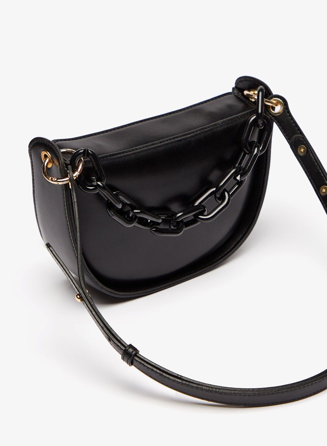 | nameOriginal | Shoexpress Solid Clutch with Adjustable Strap and Chain Link Detail Black |