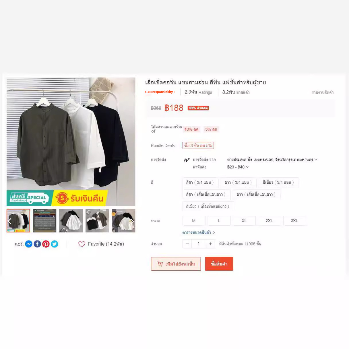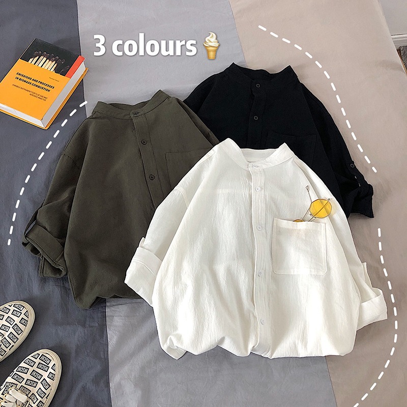 [SHOPEE popular] TH cross-border Men's Korean-style fashionable three-quarter sleeve stand collar cotton and linen casual all-match shirt
