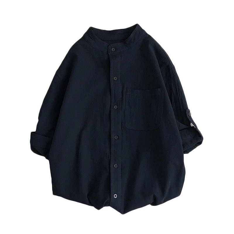 [SHOPEE popular] TH cross-border Men’s Korean-style fashionable three-quarter sleeve stand collar cotton and linen casual all-match shirt