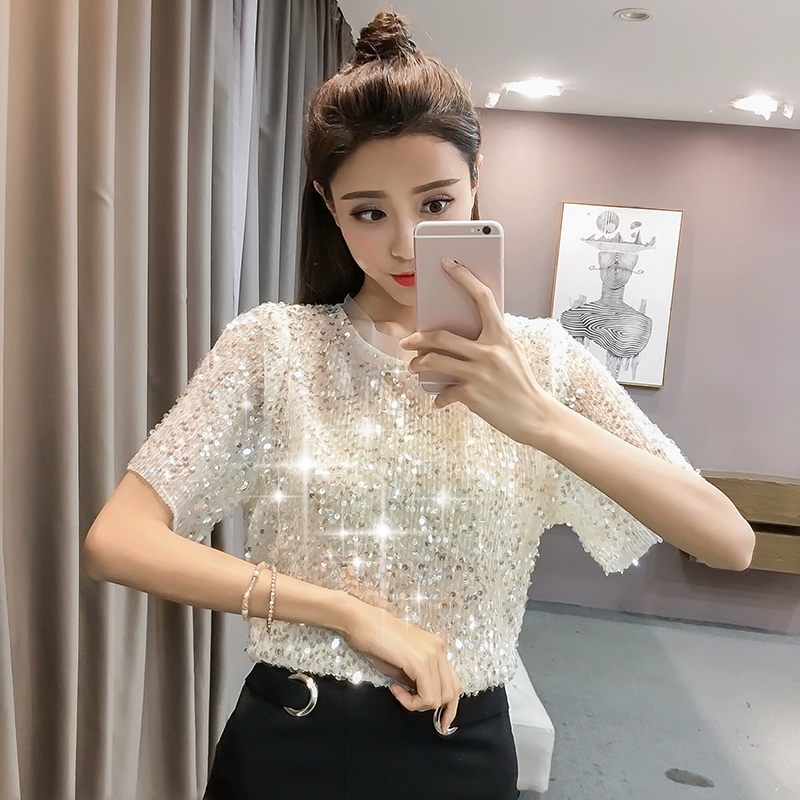 | nameOriginal | Shopping and dancing round neck short sleeve loose bling summer dress |