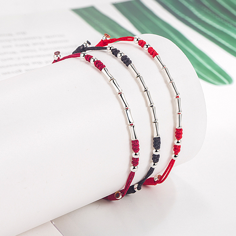 Shore Bracelet Girls Red Hand Rope Lucky Silver Bamboo Bracelet Boys Red Rope Bracelet Women's Gift