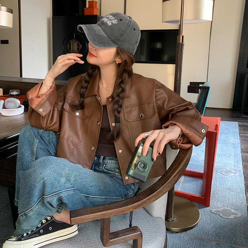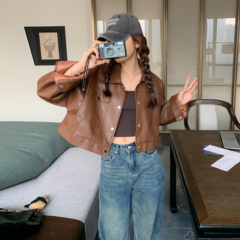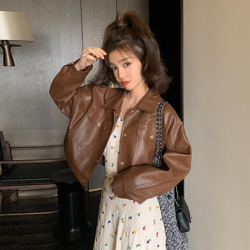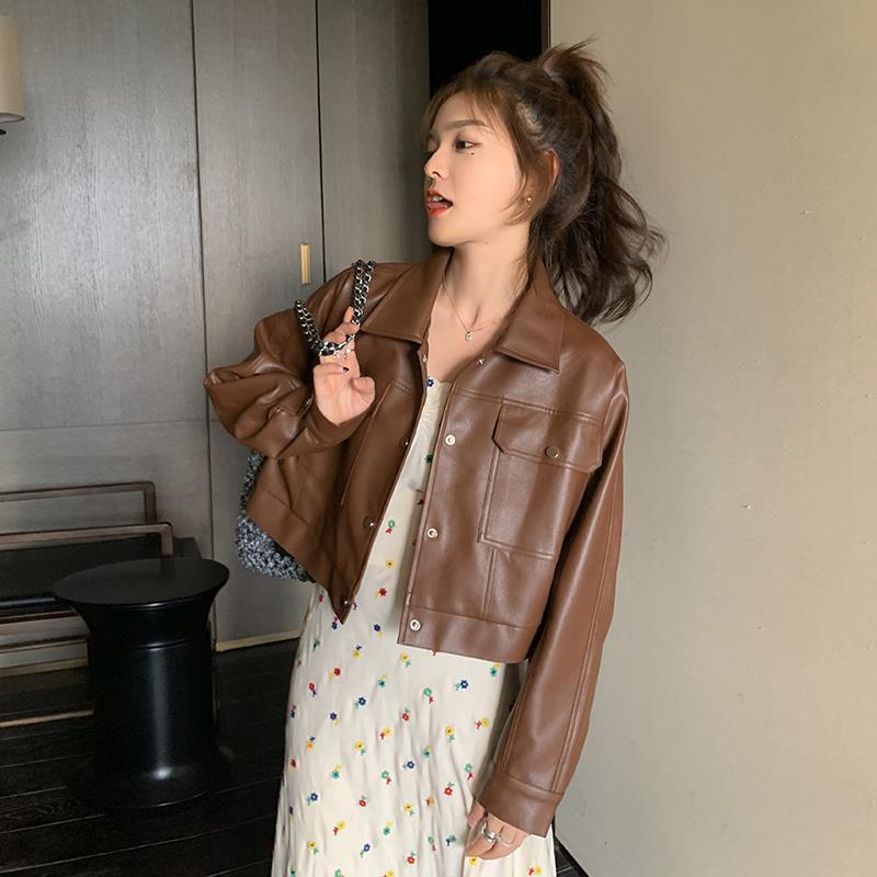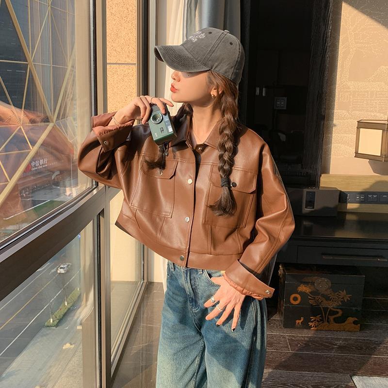 | nameOriginal | Short Brown small leather coat for women 2024 Spring and Autumn New style small design retro Hong Kong style leather jacket fashion |