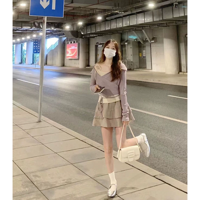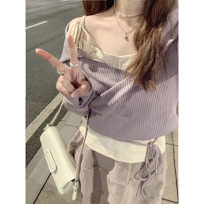 | nameOriginal | Short camisole three-piece long-sleeved sweater |