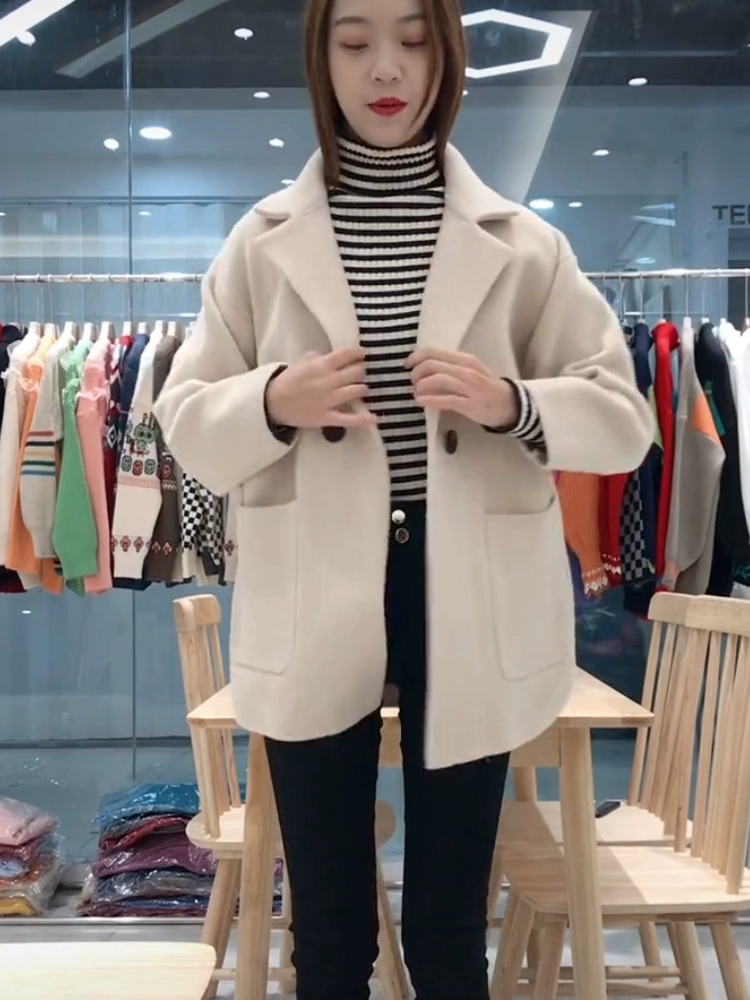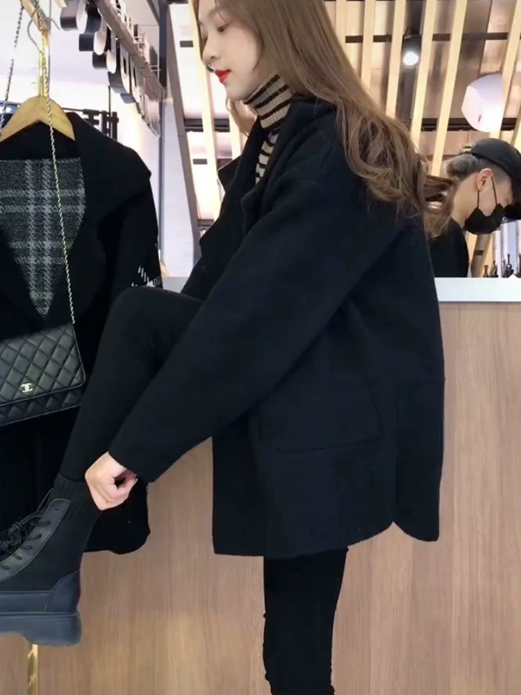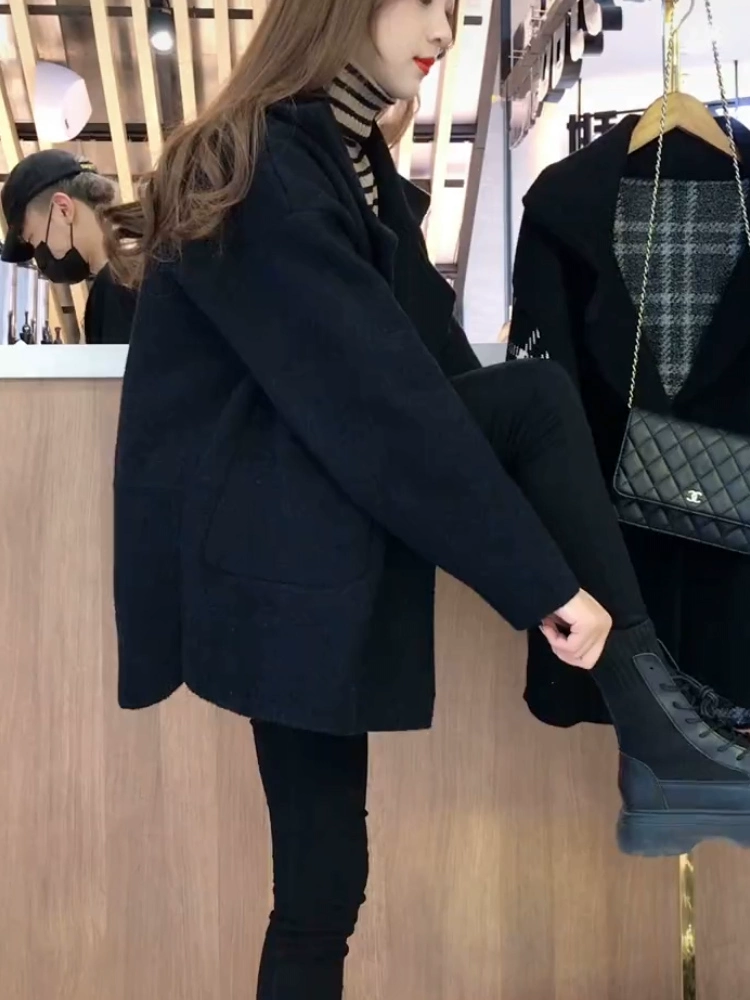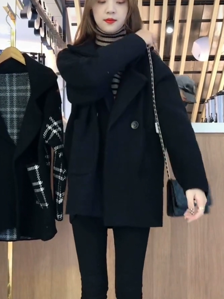 Short coat for women 2024 spring and autumn new style woolen woolen thickened Korean style design suit collar coat trendy for small people