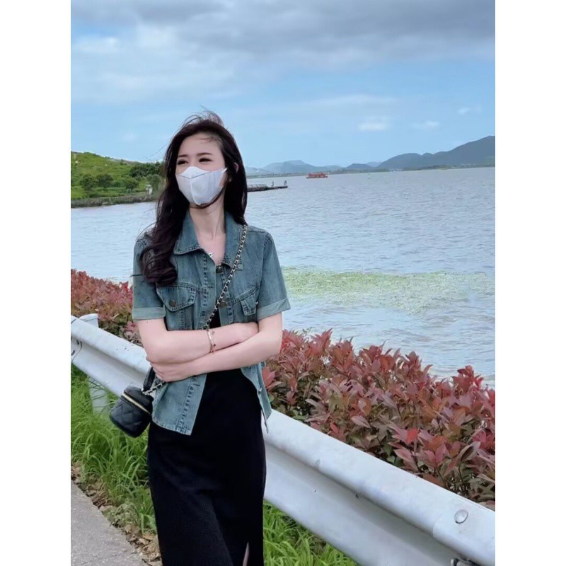| nameOriginal | Short Denim Coat Design Niche Women's Thin American-style Retro Small All-match Polo Collar Short-sleeved Top |