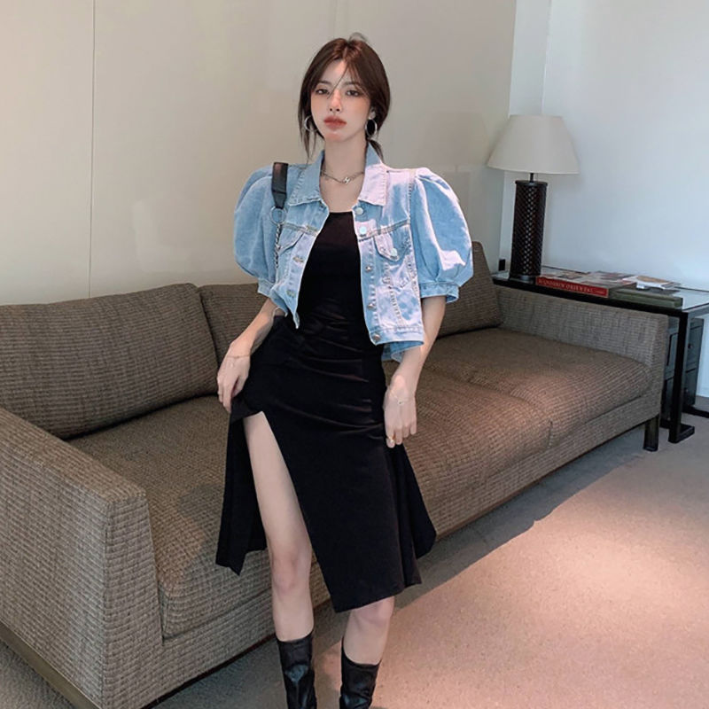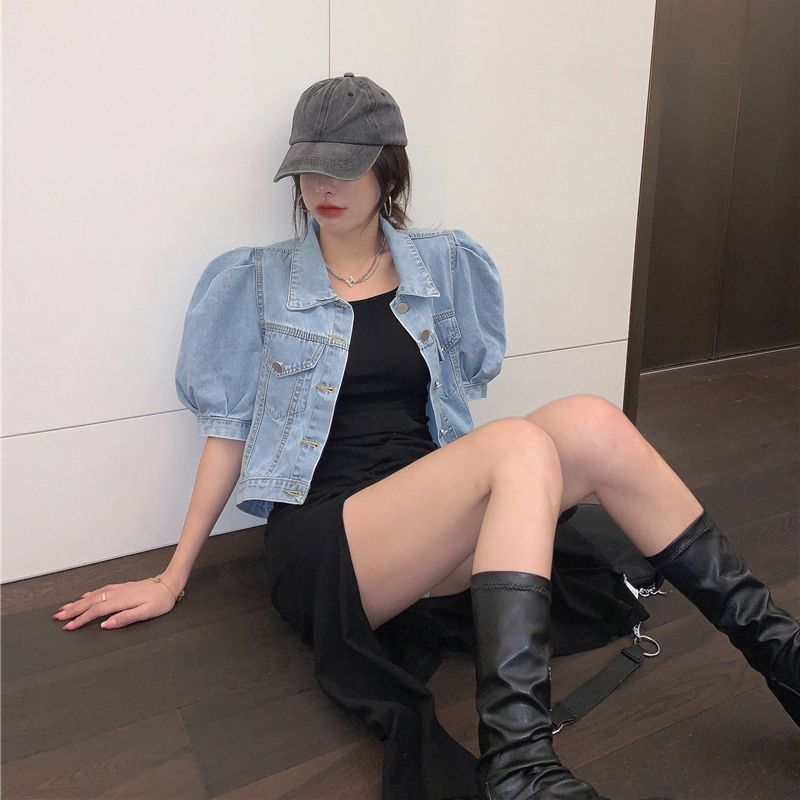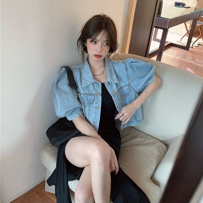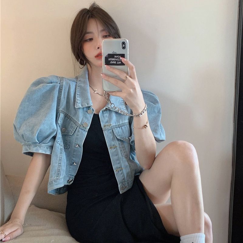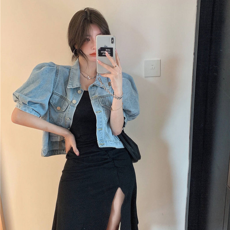 | nameOriginal | Short Denim Coat Women's Summer Short Sleeve Loose Jacket Puff Sleeve Design Niche Cardigan Thin High Waist Top |