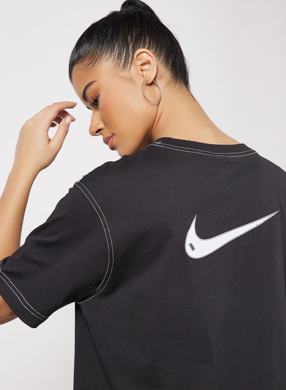 This product is crafted from sustainable materials, with a composition of at least 75% organic cotton fibers. It features a crew neck and short sleeves, with a comfortable and regular fit. The Nike signature branding detail adds a touch of style. To ensure longevity, please follow the care label instructions when washing. The model is approximately 175 cm tall and is wearing a size S.