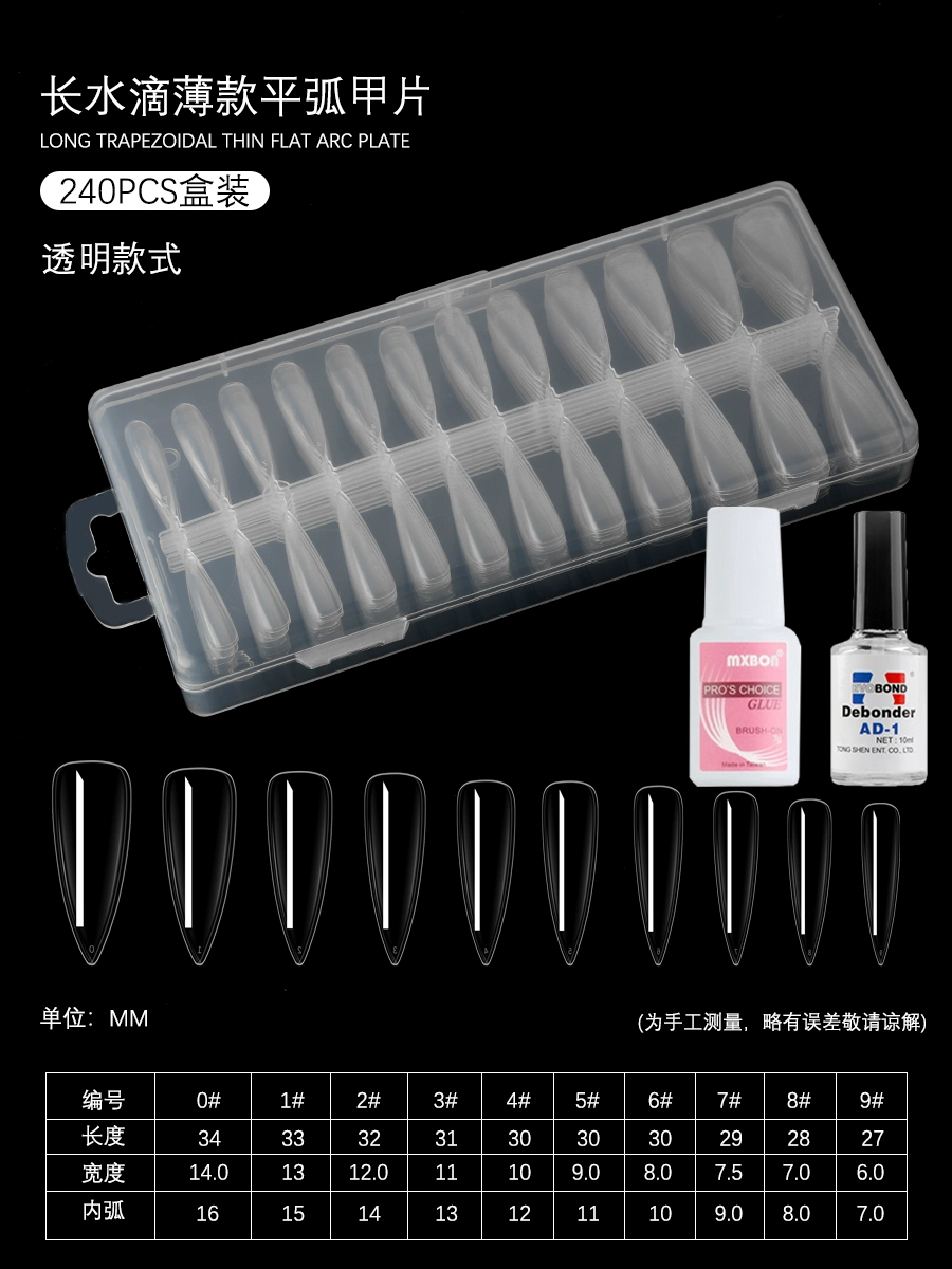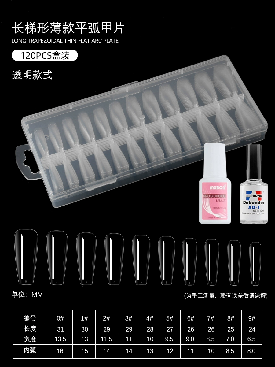 | nameOriginal | Short extended ultra-thin seamless semi-adhesive flat arc nail plate |