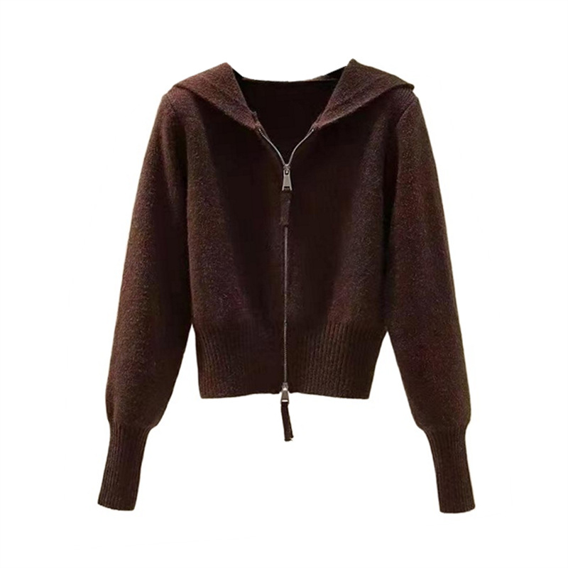 | nameOriginal | Short Hooded Double Zipper Sweater Women's Fashionable Autumn and Winter New Waist Slimming Western Style Small Sweater Women's Coat |