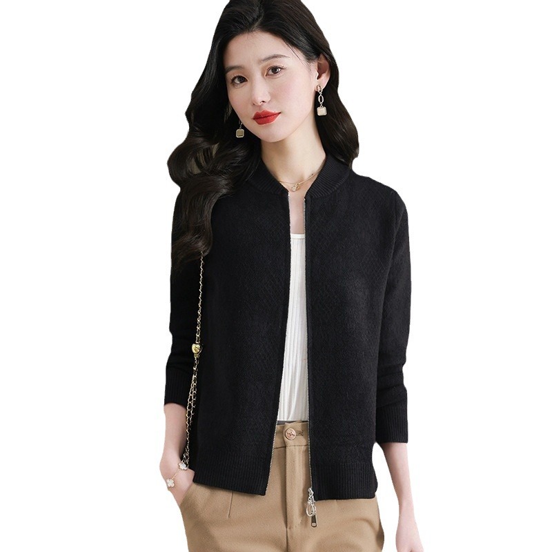 | nameOriginal | Short Knitted Cardigan Women's Spring and Autumn 2024 New Style Vertical Collar Zipper Jacket Outer Sweater Autumn Solid Color Jacket for Women |
