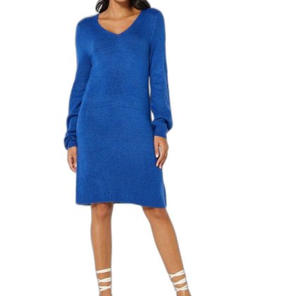 This product features a cozy blend of acrylic fabric that is perfect for chilly weather. It has a stylish V-neck and long sleeves, with dropped shoulder seams for added comfort. The mini length provides a comfortable fit, and it can be easily washed following the care label instructions. The model in the picture is approximately 175 cm tall and is wearing a size S.