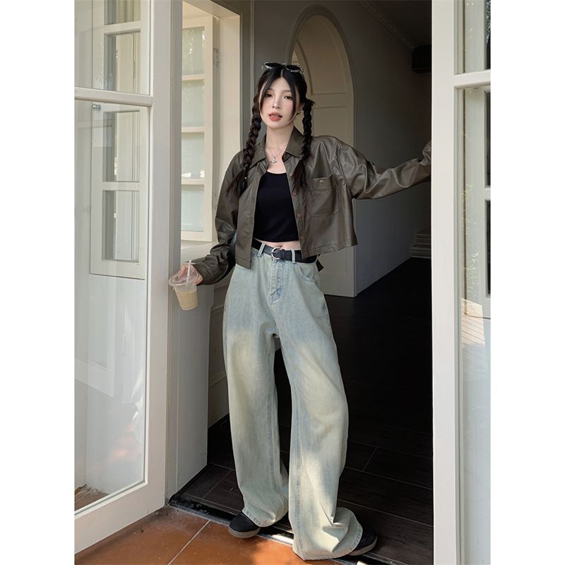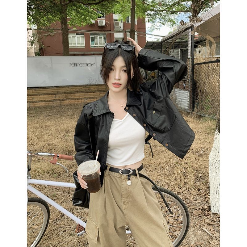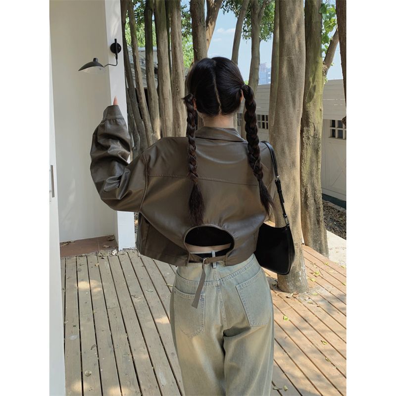 | nameOriginal | Short Leather Jacket Women's Autumn Korean Style 2024 New Backless Design Sense Loose Long Sleeve Jacket Biker Clothing Trendy |