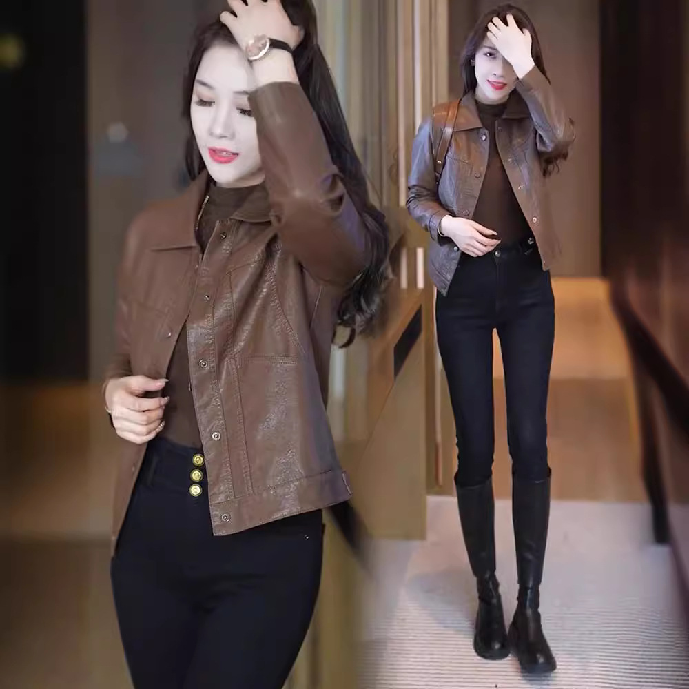 | nameOriginal | Short Leather Women's Autumn 2023 New Elegant All-match Stylish Fashion Water Wash Leather Jacket Coat Women |