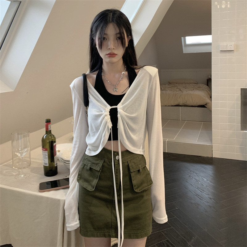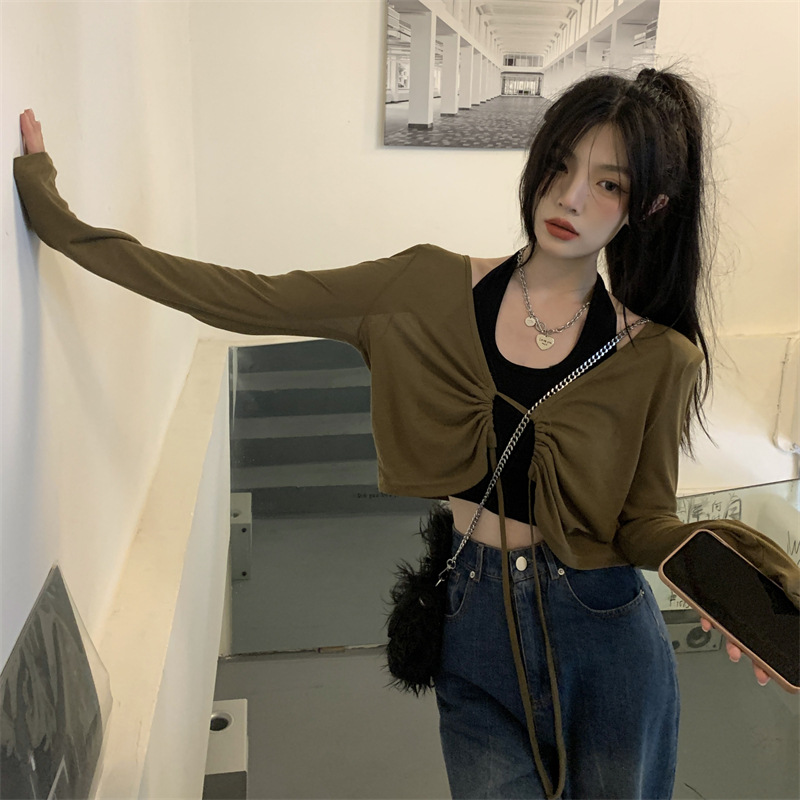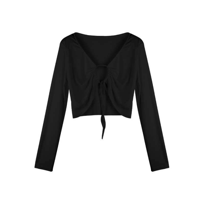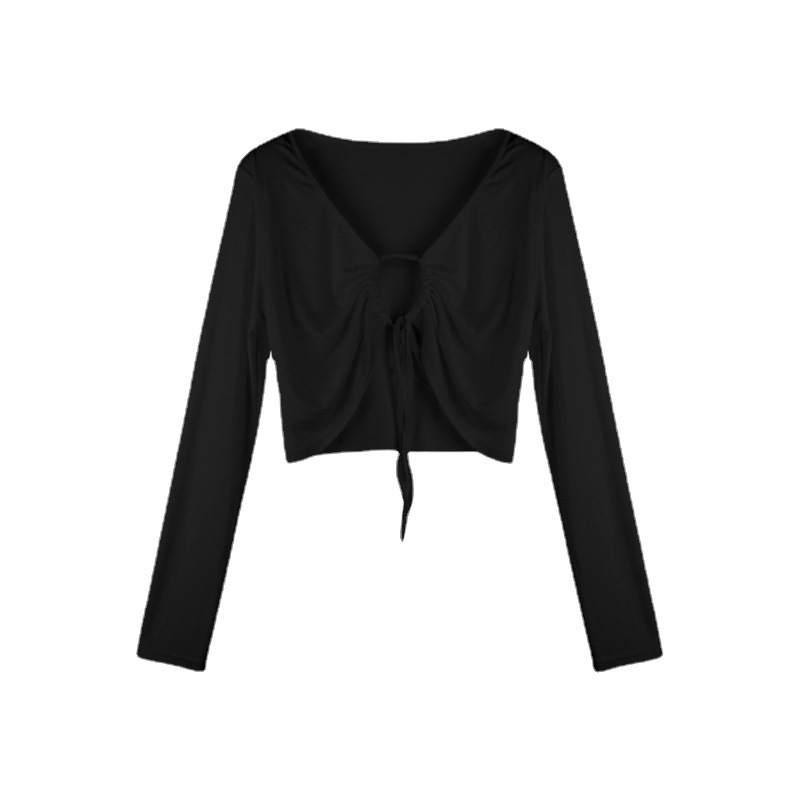 | nameOriginal | Short Loose Lace-up Sunscreen Shirt Thin Blouse Women's 2024 Summer New Arrival Neck Sling Jacket Women's Trendy Top |