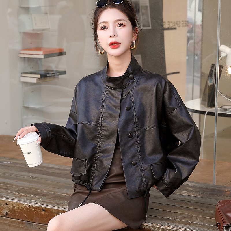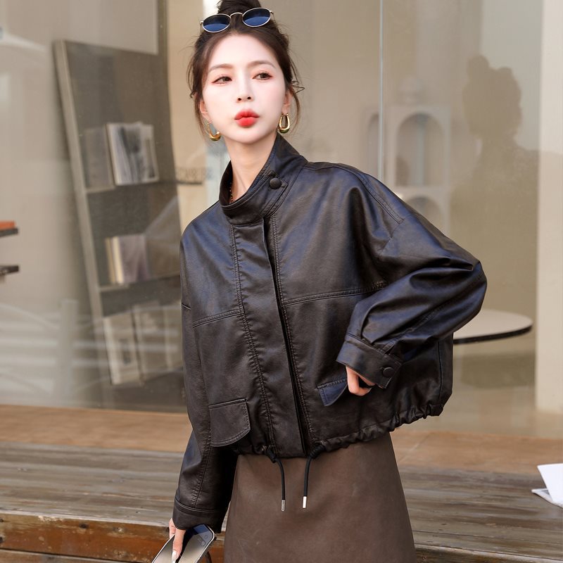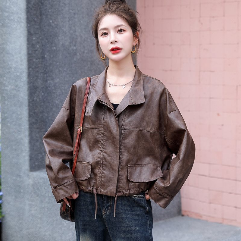 | nameOriginal | Short Motorcycle Leather Jacket Women's 2024 Spring and Autumn New Loose Casual Western Style Petite Collar Puleather Jacket |