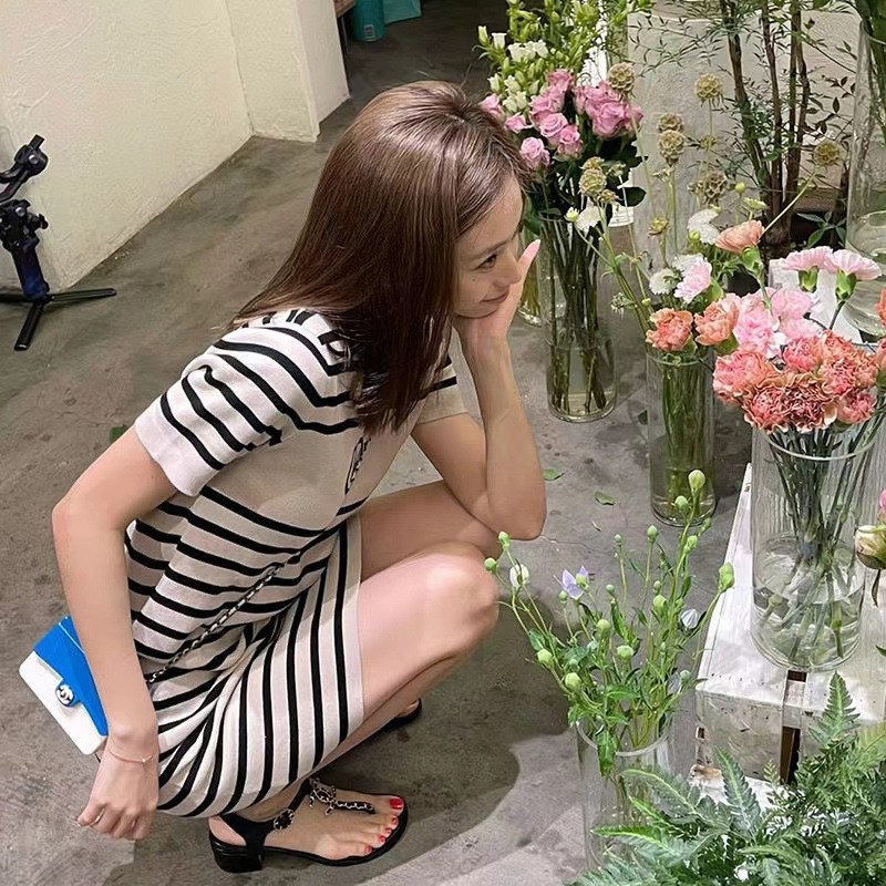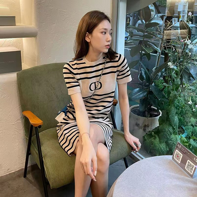 | nameOriginal | Short Short-sleeved T-shirt Women's Summer New Korean Style Elegant Mid-length Ice Silk Thin Striped Sweater Top |