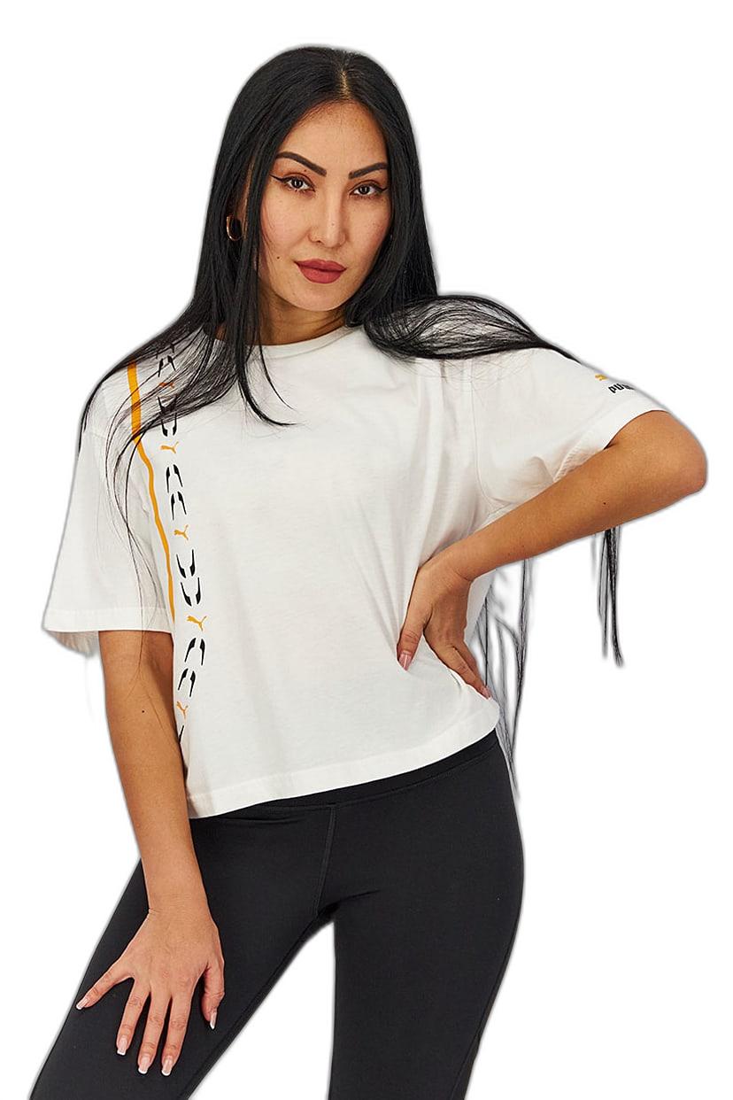 | nameOriginal | Women Sportswear Fit Short Sleeve Graphic Print Crop Top, White Combo |