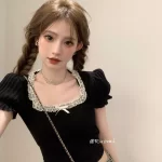| nameOriginal | Short sleeve design niche slim fit black bow |