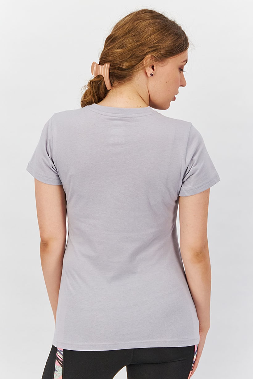 | descriptionOriginal | Care : Machine washable, Fit : Sportswear Fit, Ideal For : Women, Size shown : US, Sleeve Length : Short Sleeve, Thickness : Medium, Type of Sport : Training, Types of Hem : Straight hem, Types of Neckline & Collar : Crew neckline, Types of Sleeve : Short sleeve, Disclaimer : Product color may slightly vary due to photographic lighting sources or your monitor settings., Fabrics : 100% Cotton, Pattern & Print : Brand Logo, Sportswear Type : T-Shirt, Types of Closures : Pullover, Color Family : Grey, Occasion : Sport, |