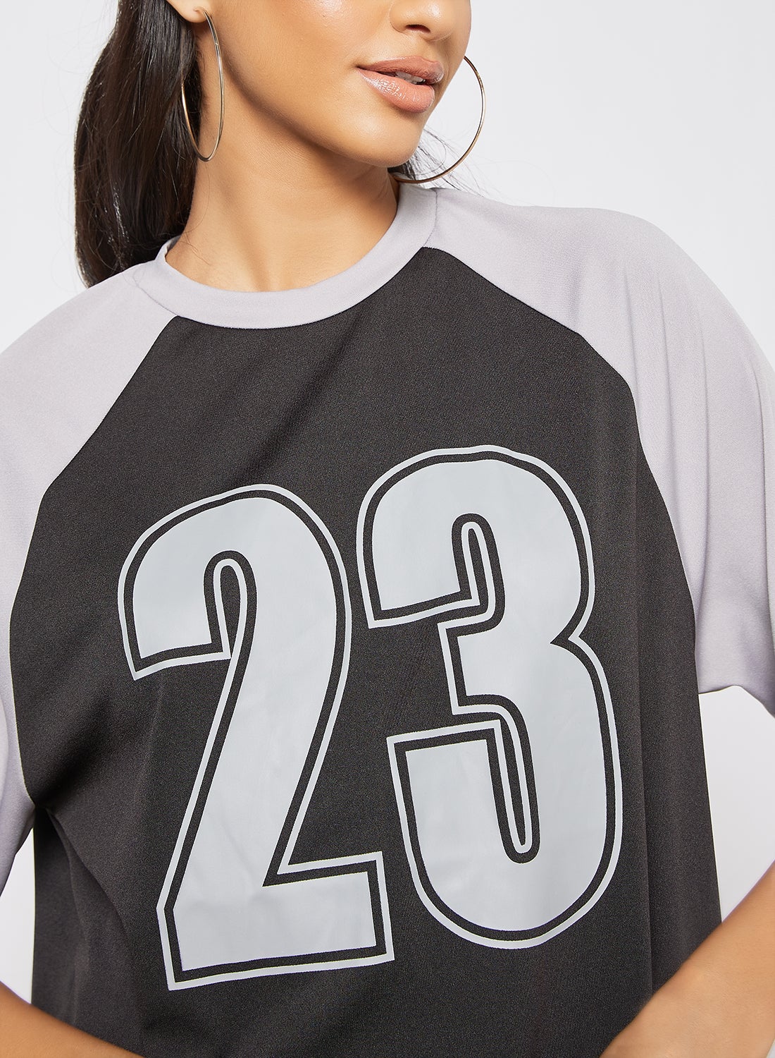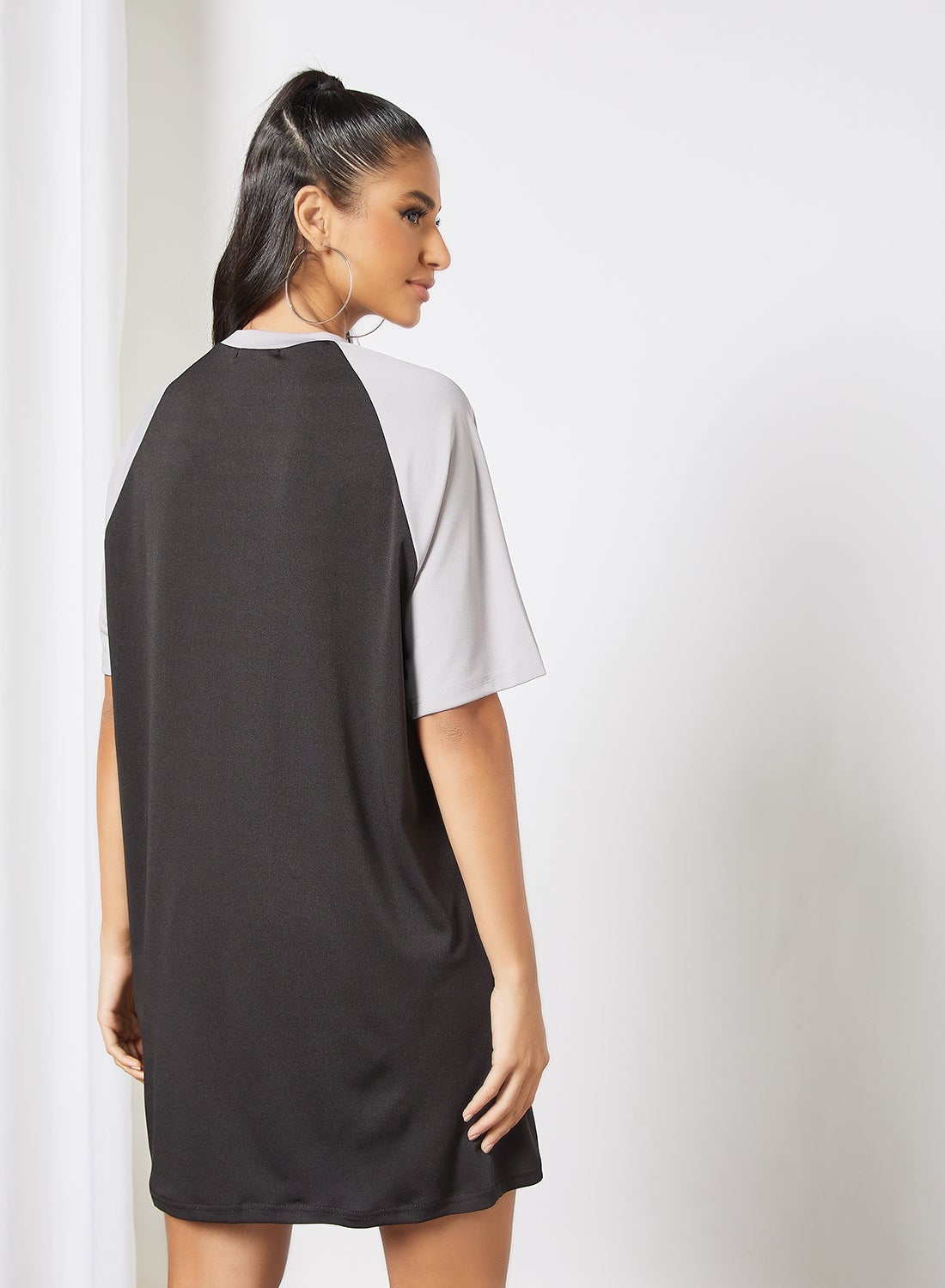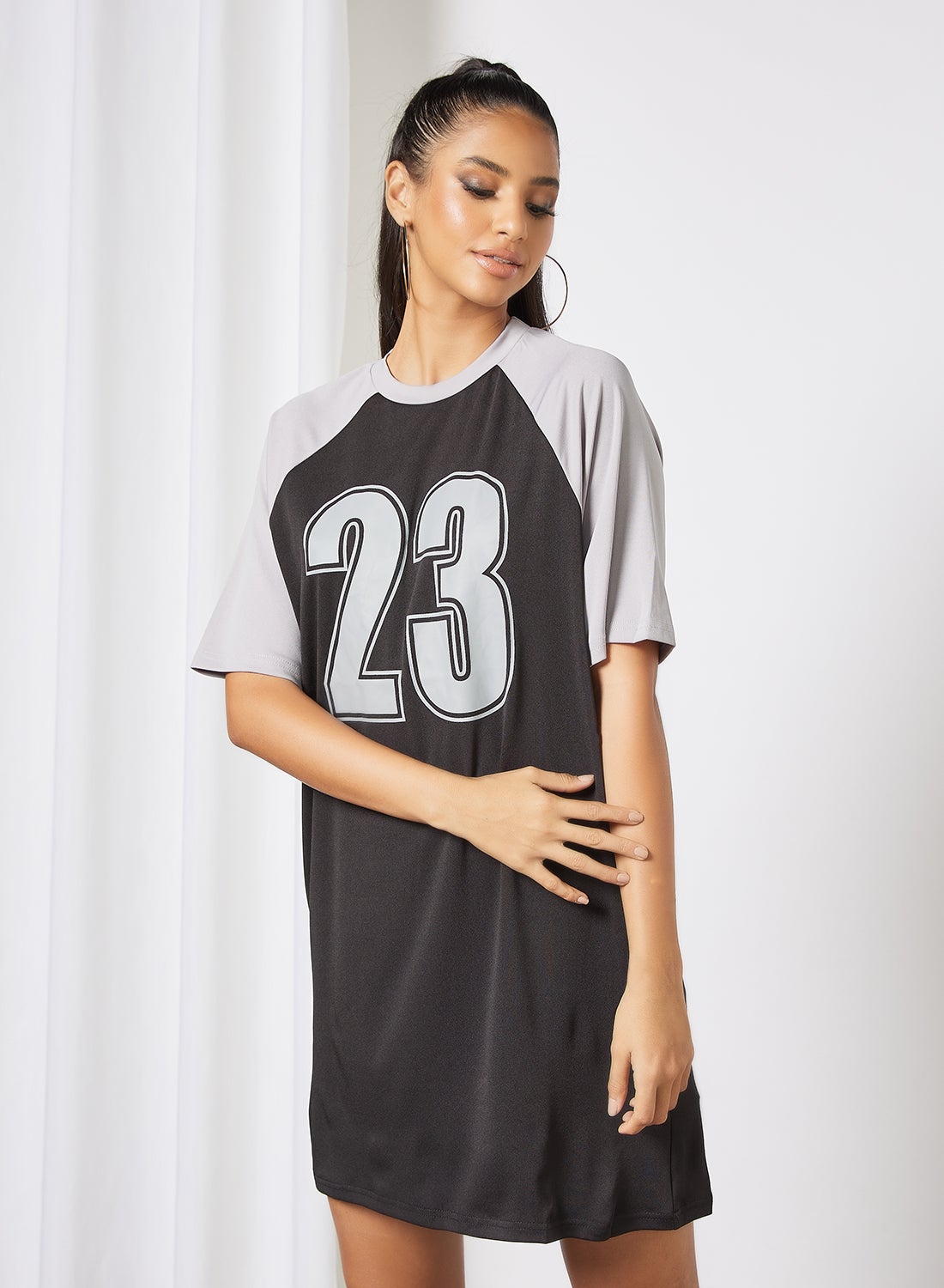 | nameOriginal | Women's Polyester Blend Raglan Short Sleeve Mini T-Shirt Dress With Crew Neck Number Printed Black/Grey |